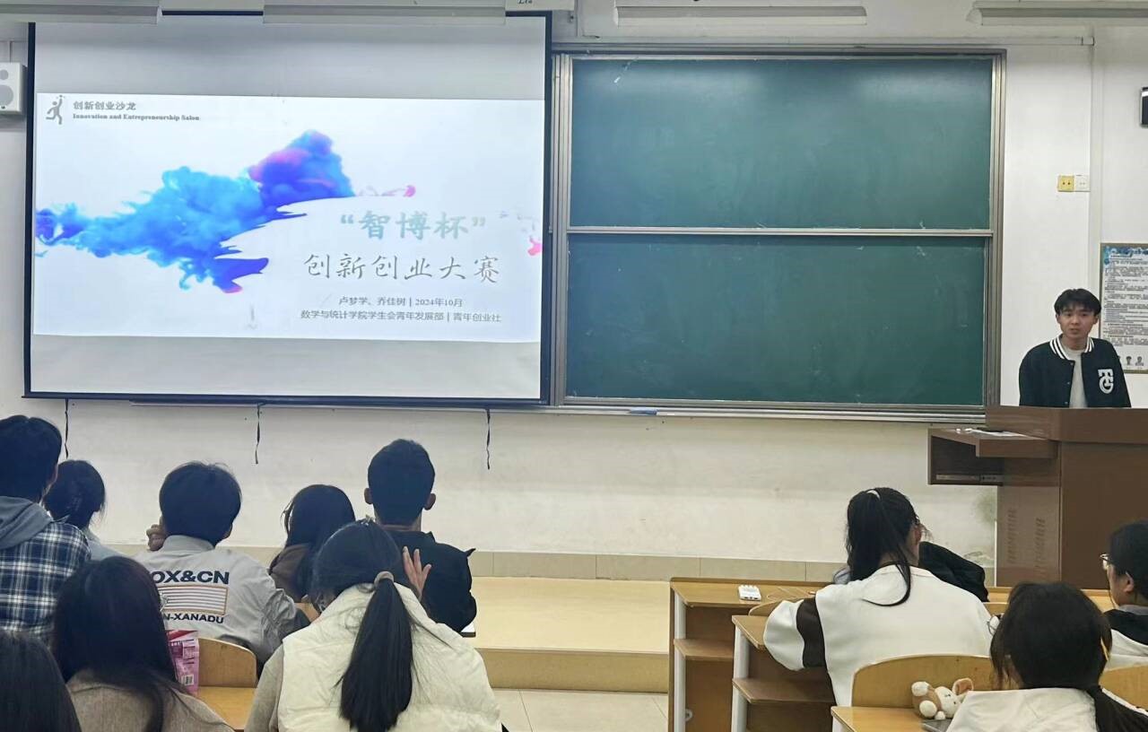10月10日,数学与统计学院于文渊楼B102举办“智博杯”创新创业大赛宣讲会,学院本科生和研究生近200人参加活动。