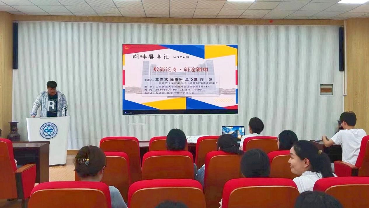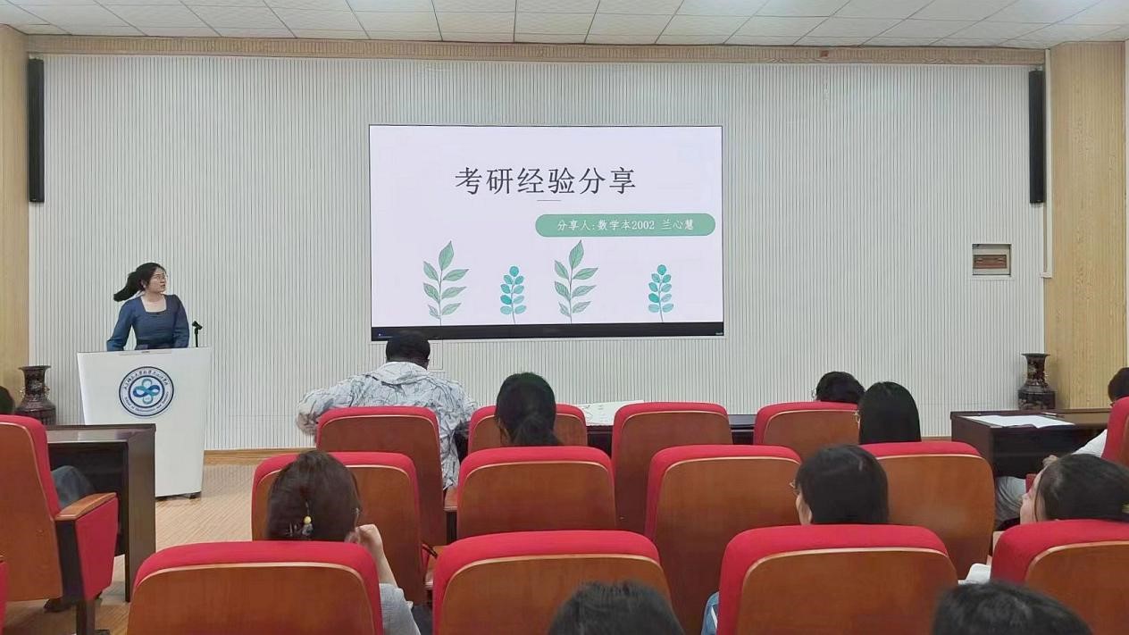 5月19日下午,校团委联合数学与统计学院团委举办了第306期湖畔思享汇——“数海泛舟,研途翱翔”考研经验分享会。本次分享会由20级考研上岸学生代表主讲,我院部分本科生参加。