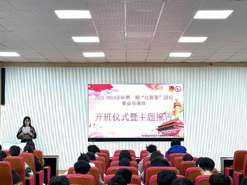 12月5日,数学与统计学院在文渊楼B区119报告厅举办2023-2024学年“红数苗”团校第一期育苗班开班仪式。往期育苗班优秀学员代表,以及本期育苗班全体学员参加本次仪式。