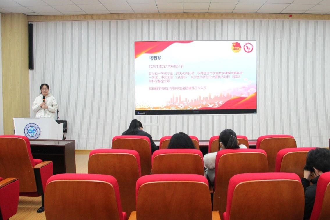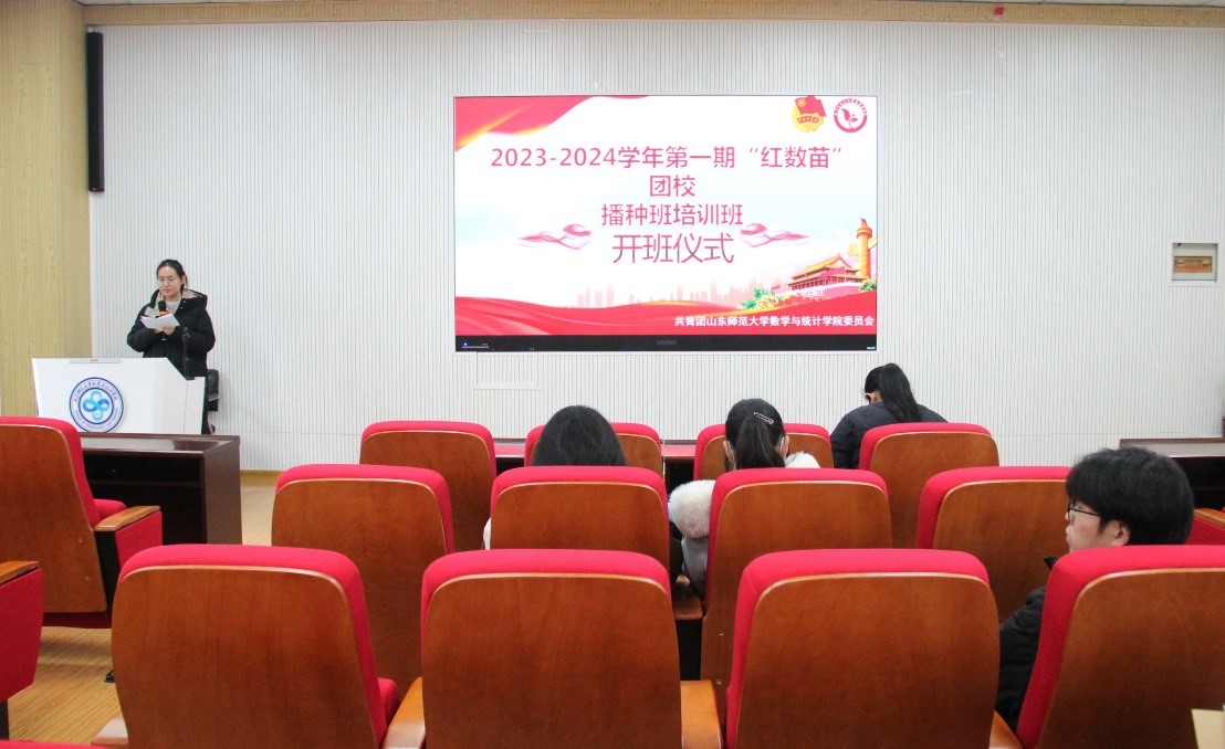 11月25日,数学与统计学院于文渊楼B区119报告厅举办2023-2024学年第一期“红数苗”团校播种班开班仪式。学院团委书记王景出席仪式,2023级全体入团积极分子到场聆听。