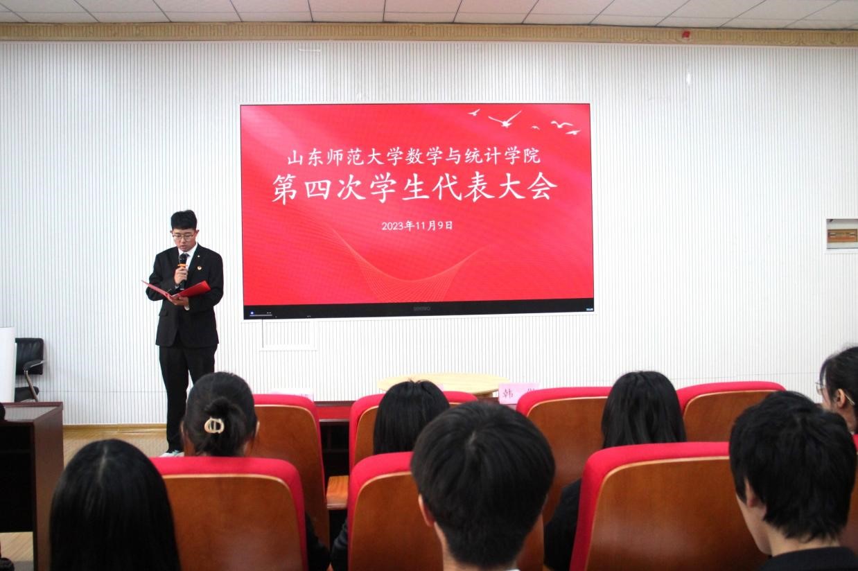学生会代表谢孟尧向大会作山东师范大学数学与统计学院学生会工作报告,供各位代表审议。选举过程公开透明、公平公正,严格执行《山东师范大学数学与统计学院第四次学生代表大会选举办法》,经过规范选举,产生了新一届学生委员会及主席团。