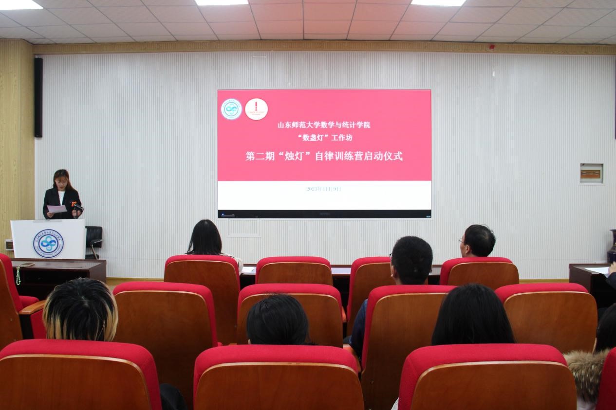 11月9日,数学与统计学院于长清湖校区文渊楼B119报告厅举办“数盏灯”成长工作坊之第二期“烛灯”自律训练营启动仪式。院党委副书记葛海滨、团委书记王景、部分辅导员老师以及本期训练营的指导员和营员参加活动。