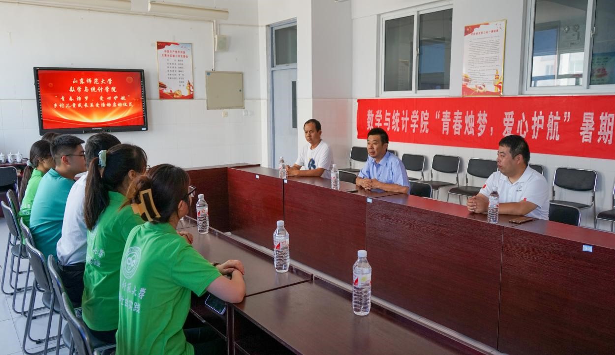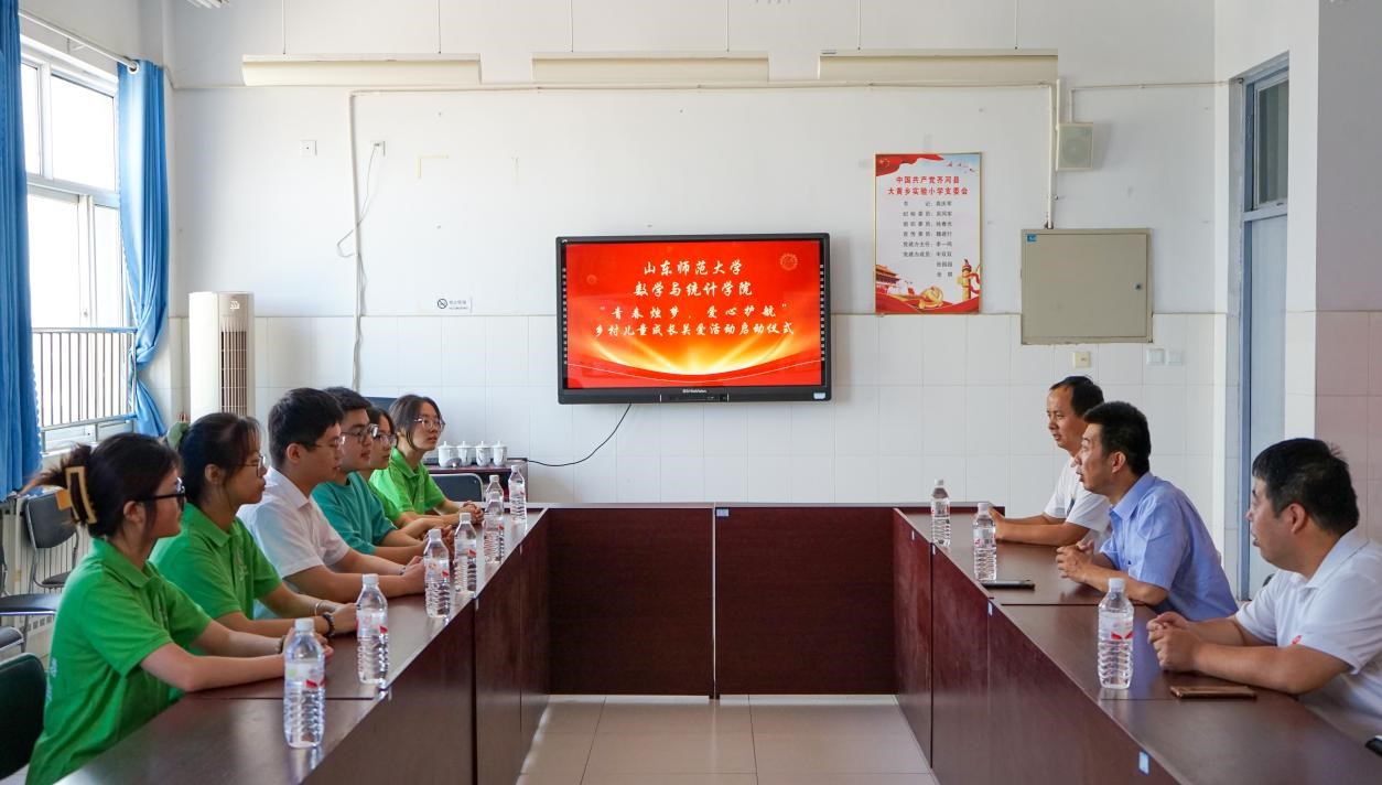 9号上午,数学与统计学院“青春烛梦,爱心护航”乡村儿童成长关爱活动启动仪式在齐河县大黄乡实验小学会议室举行。大黄乡实验小学校长高庆军,副校长郭军,办公室主任张荣成以及山东师范大学数学与统计学院指导老师张世桢和乡村儿童成长关爱团全体成员出席启动仪式。
