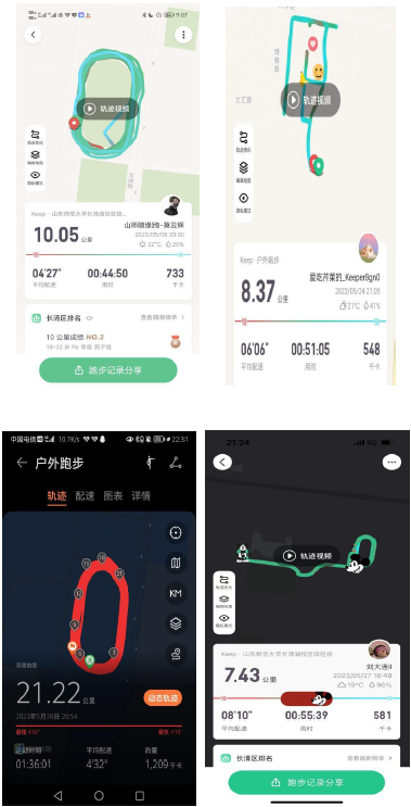本次活动采取线上打卡的形式,同学们使用Keep等软件的跑步功能,每天打卡记录校内运动轨迹,活动期间内的跑步总公里数,最后根据总公里数和打卡天数进行奖项评选。