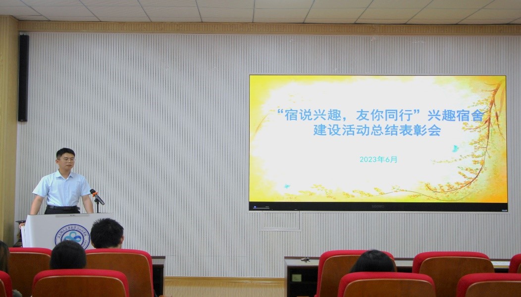 6月13日下午,我院在文渊楼B119报告厅举办“‘宿’说兴趣,‘友’你同行”兴趣宿舍建设活动总结表彰会。会议由院学生会权益与服务部张天杨主持,辅导员张世桢老师出席大会,获奖宿舍代表及相关工作人员参加了此次大会。