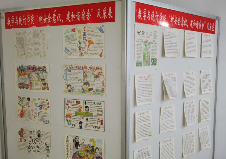 为了增强同学们的宿舍安全意识,展现大家多姿多彩的宿舍文化生活,营造和谐友爱、温馨整洁的宿舍氛围,数学与统计学院研究生举办了“树安全意识,建和谐宿舍”安全文明风采展活动。学院研究生踊跃报名参加,活动共收到100余份作品。