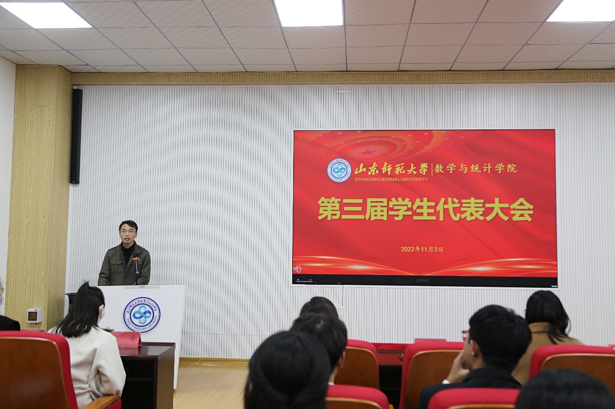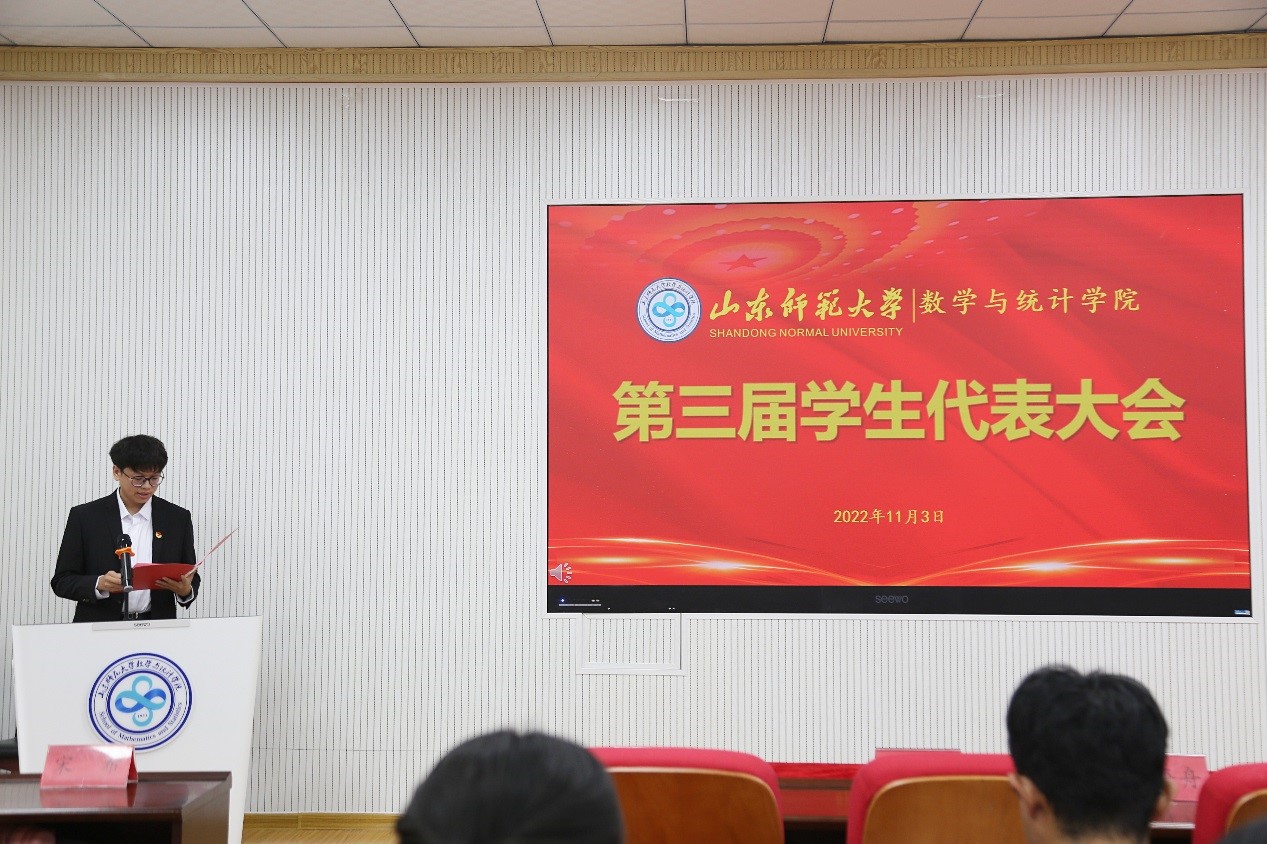 2022年11月3日,山东师范大学数学与统计学院第三次学生代表大会在文渊楼B119会议室顺利召开。