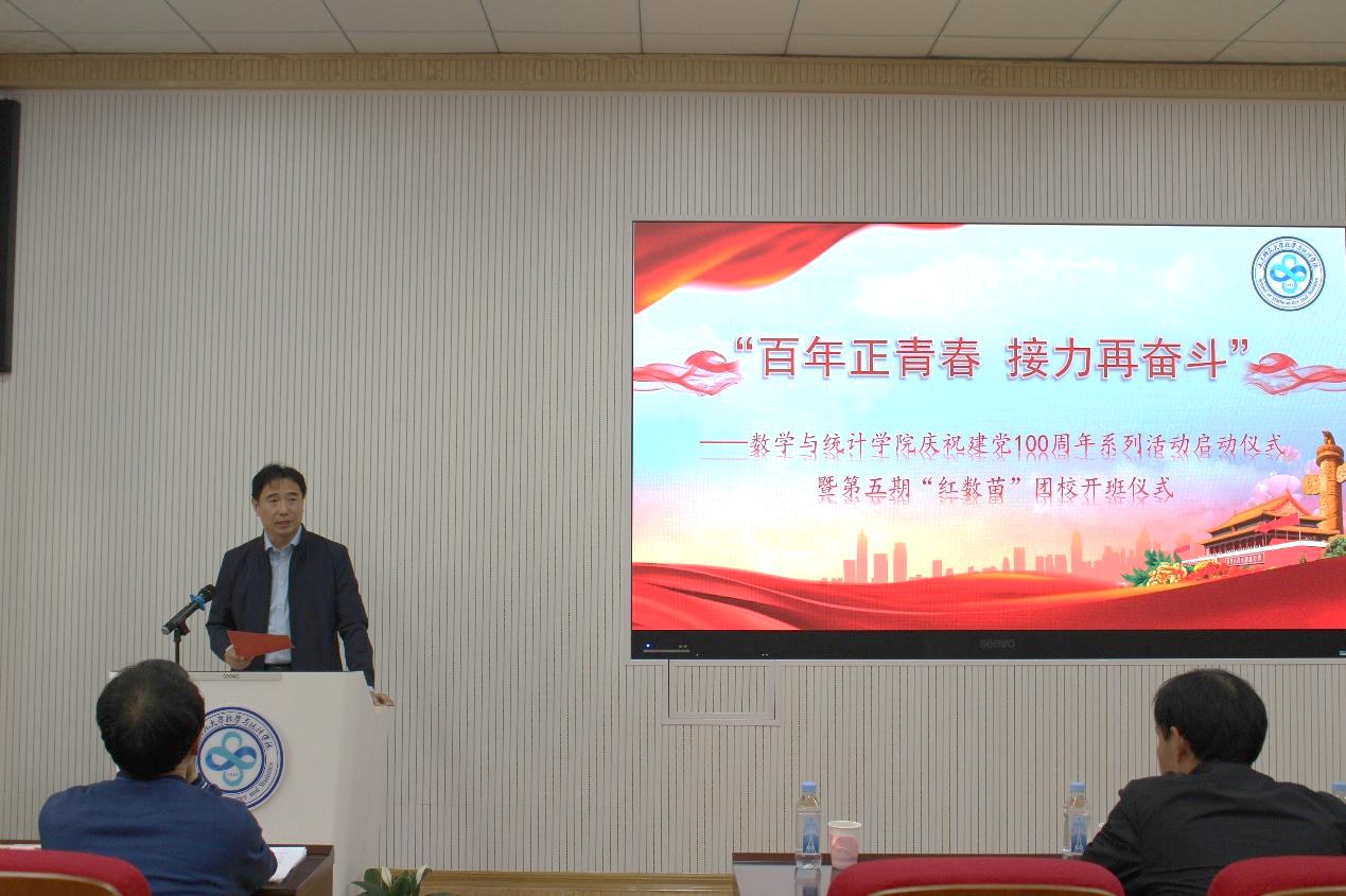 5月7日,数学与统计学院在文渊楼B区119会议室举行庆祝建党一百周年系列活动启动暨第五期“红数苗”团校开班仪式。校党委组织部副处级组织员尚延山、校团委副书记王雪、数学与统计学院党委书记战秉聚、院党委副书记刘冬梅以及各年级辅导员出席活动。第五期“红数苗”团校全体学员及往期优秀学员代表参与活动。