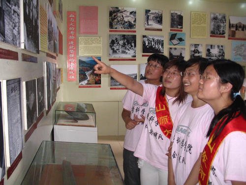 学生党员在中共中央分局旧址内参观