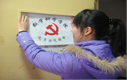 为了进一步加强学生宿舍管理,数科院转变思维方式,不断创新,推出“党员示范宿舍”这一举措,充分发挥学生党员在宿舍管理中的模范带头作用,把宿舍管理与党员教育相结合,实现了以党员教育带动宿舍管理,以宿舍管理促进党员教育的新模式。
