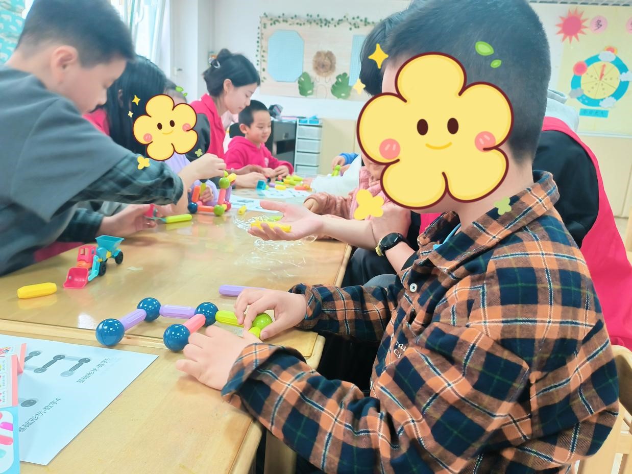 在磁力棒游戏中,磁力棒在孩子们手中如同拥有神奇魔力,孩子们依照图纸搭出正方体和长方体,随后进入自由创作环节,大家巧妙拼接出各类立体图形。这场游戏就像奇妙的魔法旅程,有效提升了孩子们的创造力、想象力,培养了对图形的感知和识别能力,让他们收获满满。