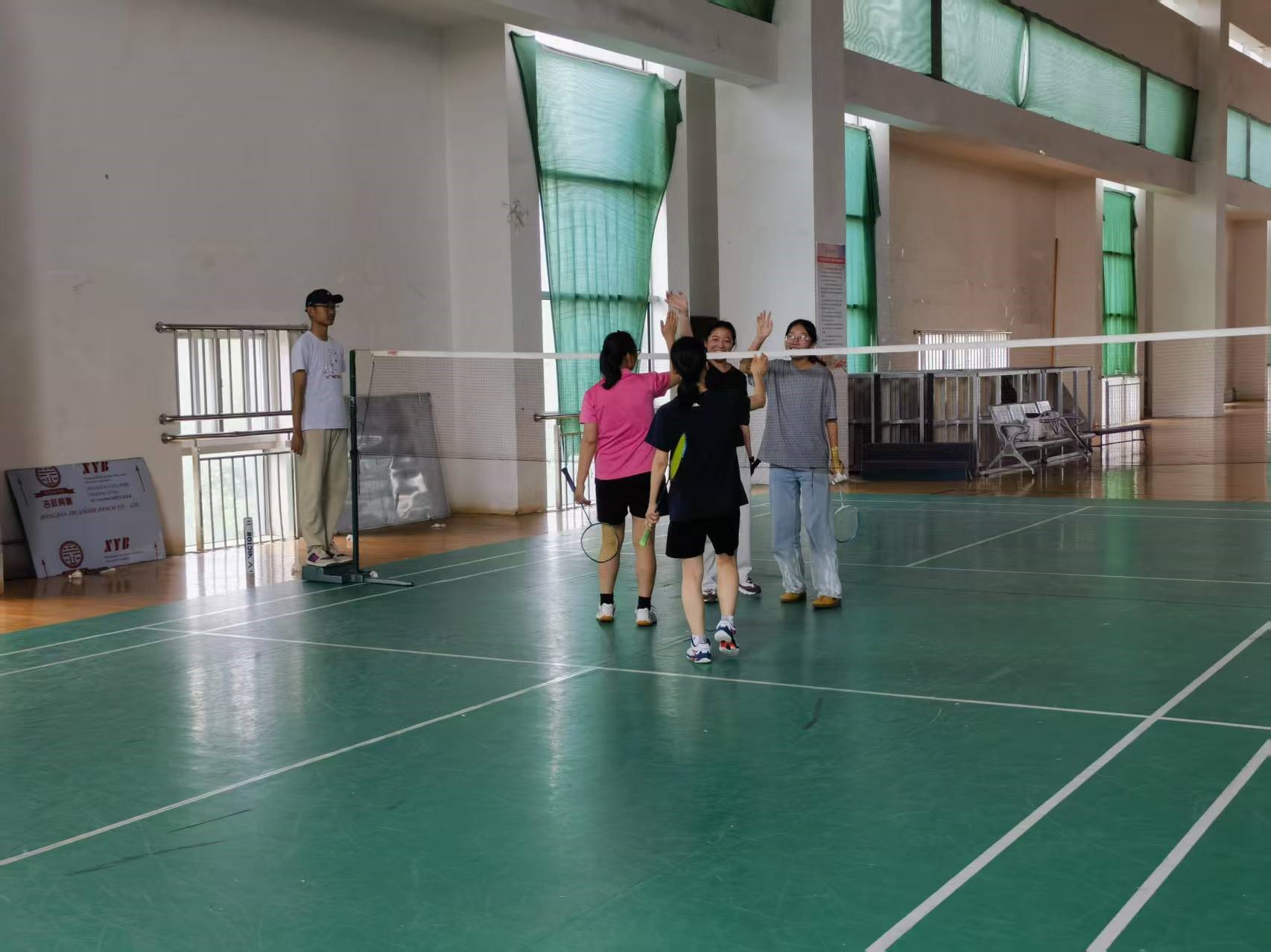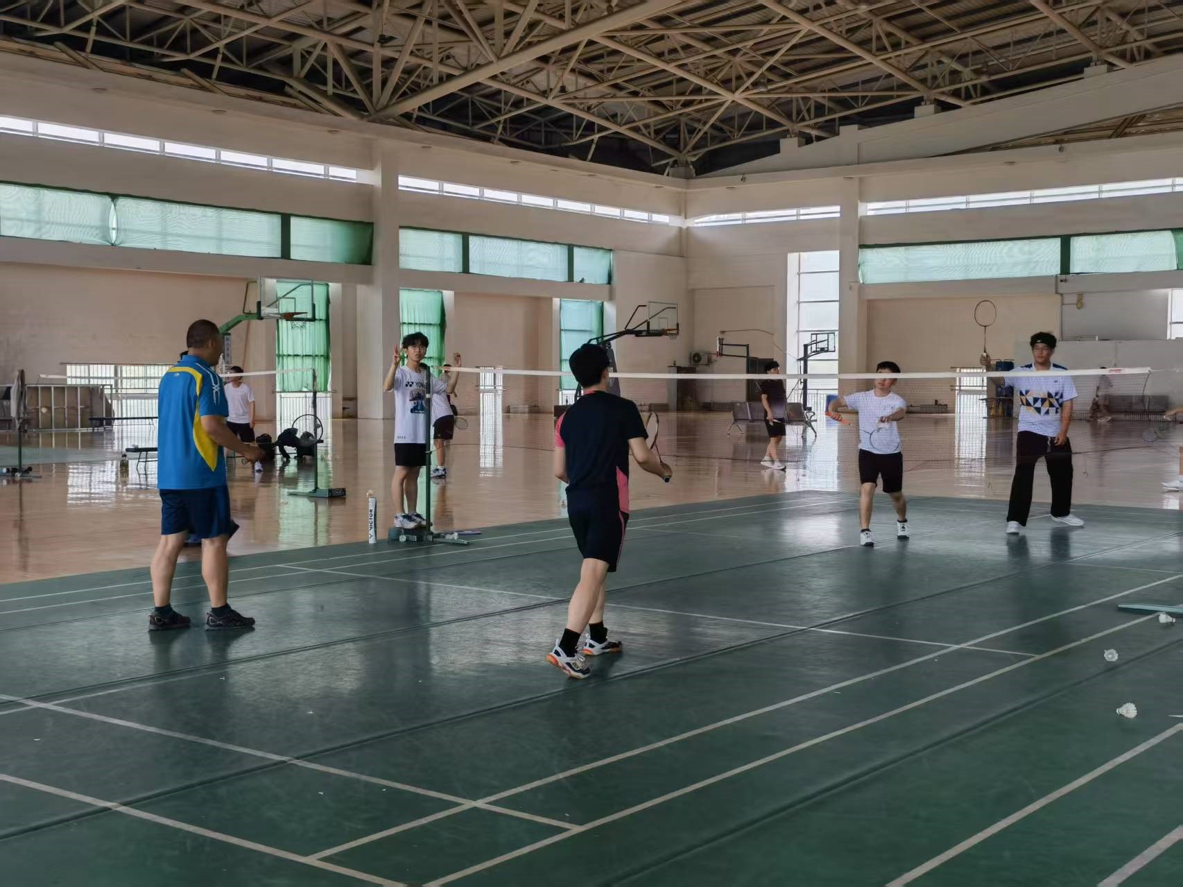 比赛采用双打对打形式,赛制为21分三局两胜。比赛正式开始。球场上,师生们身姿矫健,神情专注,紧紧锁定空中的羽毛球。他们的每一次击球都充满了力量与技巧的较量,每一次移动都精准迅速。同时,裁判们也秉持着公正公平的态度,密切地关注着比赛得分。每轮比赛结束,师生们击掌庆祝,表达对选手精湛球技的敬佩与尊重。
