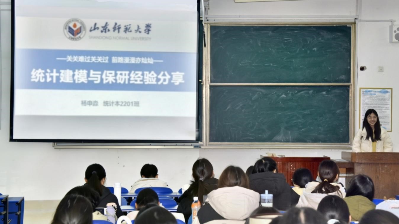 近日,数学与统计学院举办“榜样引领”系列活动——统计建模大赛及保研经验分享会。活动邀请学院2022级本科生杨申淼担任主讲人,聚焦统计建模备赛核心技巧与保研全周期规划,为现场同学带来一场干货满满的经验分享。