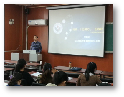 2017年9月29日上午,为让各研究生对自己研究生期间有更好地规划,顺利开展组织工作,数学与统计学院开展的此次报告在长清校区B434举行,报告由数学与统计学院李晓迪副院长召开,研究生管理办公室主任王剑老师出席了此次会议。报告开始后,李晓迪院长的讲话深深的鼓舞了大家,让同学们对未来的研究生生活有了更好的理解与规划,同时也更加明确的自己研究生期间的奋斗目标。报告主要以三个方面进行展开:如何度过研究生生活,分享国外科研环境,与同学交流时间。