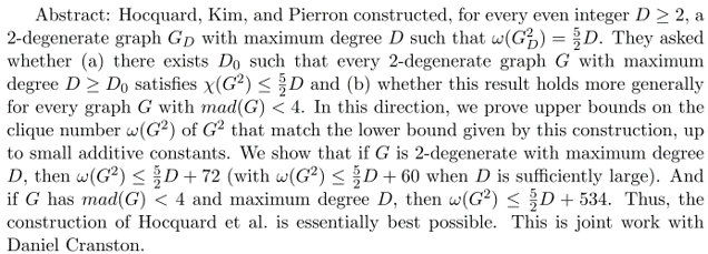 报告题目:Cliques in Squares of Graphs with Maximum Average Degree less than 4