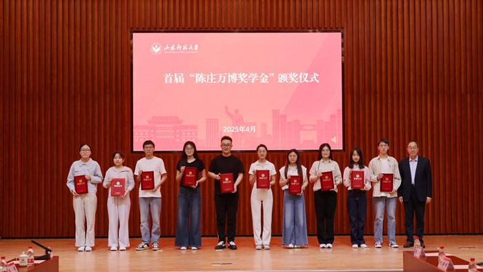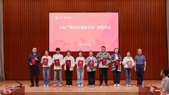 4月30日上午,山东师范大学首届“陈庄万博奖学金”颁奖仪式举行。校党委书记冯继康,数学与统计学院1976级校友、奖学金倡议发起人胡守川教授出席仪式。学校相关部门负责同志、数学与统计学院领导班子成员及师生代表参加活动。仪式由副校长周珊珊主持。